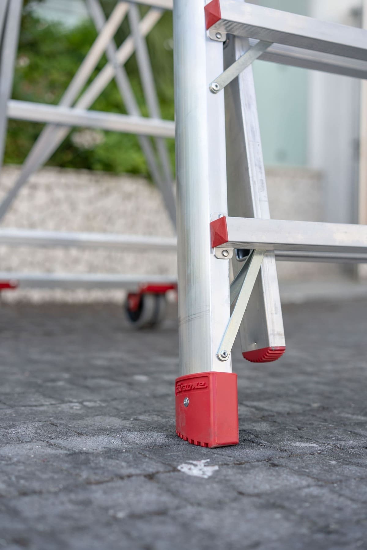 - Lo stabilizzatore telescopico permette una perfetta livellatura della scala anche in versione a zoppo